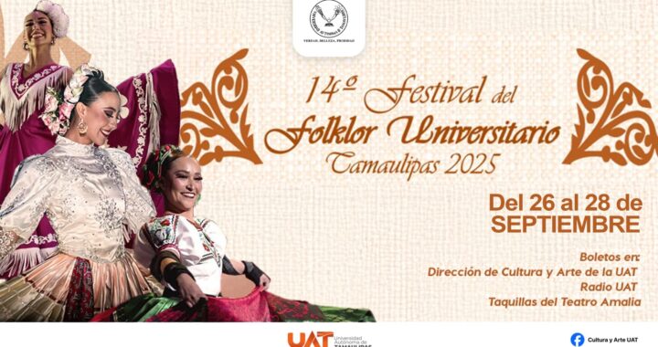 En el marco de su compromiso con la difusión de la cultura y las artes, y la vinculación con la sociedad, la Universidad Autónoma de Tamaulipas (UAT) organiza el 14.º Festival del Folklor Universitario Tamaulipas 2025, el cual se llevará a cabo del 26 al 28 de septiembre, en Ciudad Victoria. Este encuentro se consolida […]