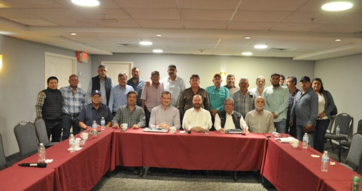 Reynosa, Tamaulipas.– Con el propósito de fortalecer la eficiencia en el uso del agua y consolidar la infraestructura hidroagrícola en la frontera norte del estado, el secretario de Recursos Hidráulicos para el Desarrollo Social, Raúl Quiroga Álvarez, presidió una reunión de trabajo con presidentes y gerentes de las Asociaciones Civiles de Usuarios del Distrito de Riego 026 Bajo Río San Juan, acompañado por el especialista en Tecnologías para la Sustentabilidad, Francisco Valdés Simancas.