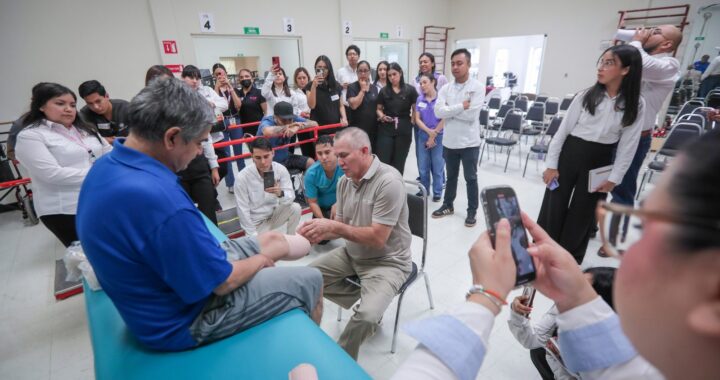 Reynosa, Tamaulipas.– Con el propósito de fortalecer la atención terapéutica que se brinda a personas con discapacidad o en proceso de recuperación física, el Sistema DIF Tamaulipas que preside la doctora María de Villarreal, lleva a cabo una serie de capacitaciones especializadas dirigidas a fisioterapeutas de los Centros de Rehabilitación Integral (CRI) y Unidades Básicas de Rehabilitación (UBR) del estado.