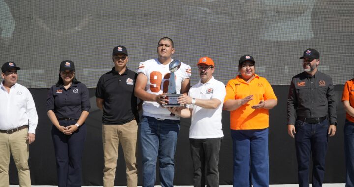 En una fiesta deportiva que tuvo como marco el Estadio Universitario “Prof. Eugenio Alvizo Porras”, Dámaso Anaya encabezó la ceremonia en la que hizo entrega de trofeos a los mejores jugadores de la temporada 2025 y dio la patada de kick off en el centro de la cancha con la presencia de los equipos participantes.