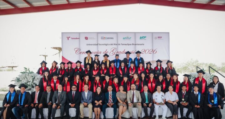 Soto La Marina, Tamaulipas.– La Universidad Tecnológica del Mar de Tamaulipas Bicentenario (UTMART) celebró la ceremonia de graduación de la Generación 2026, acto presidido por Igor Crespo Solís, subsecretario de Educación Media Superior y Superior de Tamaulipas, quien reconoció el esfuerzo de las y los 64 estudiantes que culminaron su formación profesional.