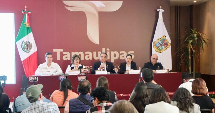 Ciudad Victoria, Tamaulipas.- Los avances que se registran en Tamaulipas en materia deportiva, en infraestructura deportiva y los detalles del proyecto denominado “Mundial Social” rumbo a la Copa del Mundo, fueron dados a conocer, durante la conferencia de prensa encabezada por el gobernador Américo Villarreal Anaya, acompañado por la secretaria de Bienestar Social de Tamaulipas, Silvia Casas, y el director general del Instituto del Deporte de Tamaulipas, Manuel Virués Lozano.