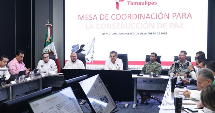 Durante la Mesa de Coordinación para la Construcción de la Paz, realizada en el C3 de esta capital, el mandatario tamaulipeco sostuvo una reunión virtual con el Consejo Municipal de Protección Civil de Tampico, encabezado por el secretario de Recursos Hidráulicos, Raúl Quiroga Álvarez; el coordinador estatal de Protección Civil, Luis Gerardo González de la Fuente; y la presidenta municipal, Mónica Villarreal Anaya, además de representantes de las Fuerzas Armadas, dependencias federales y los ayuntamientos de Madero y Altamira.