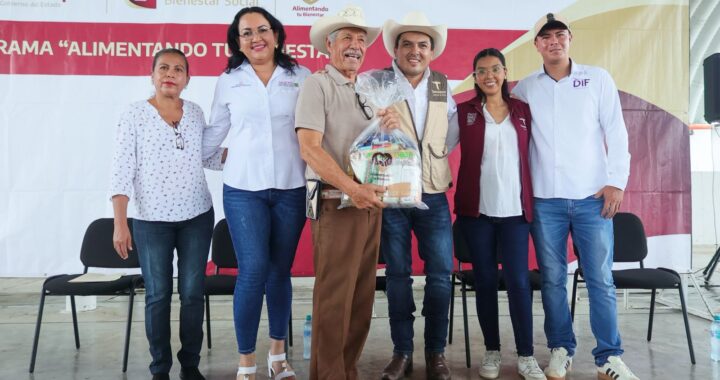 En una gira de trabajo realizada en la plaza principal de ese municipio, y con la representación de la secretaria de Bienestar, Silvia Casas González, el coordinador de Delegaciones, Ángel Nájera Ortega, hizo llegar a los beneficiarios los paquetes alimentarios, los cheques de Empleando Bienestar, así como tinacos, paquetes de láminas y de letrinas.