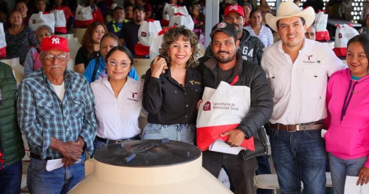 En el salón del comité ejidal de ese municipio y ante autoridades locales y estatales, beneficiarios de los programas y público en general, Casas González hizo entrega de apoyos de los programas “Alimentando tu Bienestar» mediante paquetes alimentarios, así como de “Atención Ciudadana para el Bienestar” en que se entregaron 30 tinacos para almacenamiento de agua potable y nueve vales de paquetes de láminas galvanizadas.