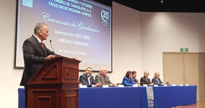Tampico, Tamaulipas. – “Somos testigos de nuevas generaciones que por amor a la vida hoy se convierten en doctores y doctoras comprometidos con la salud de las personas, capaces de enfrentar y superar cualquier reto”, señaló el secretario de Salud, Vicente Joel Hernández Navarro, al asistir a la ceremonia de graduación de la generación 2021-2026 de la carrera de médico cirujano del Instituto de Ciencias y Estudios Superiores de Tamaulipas. A.C, de Tampico.
